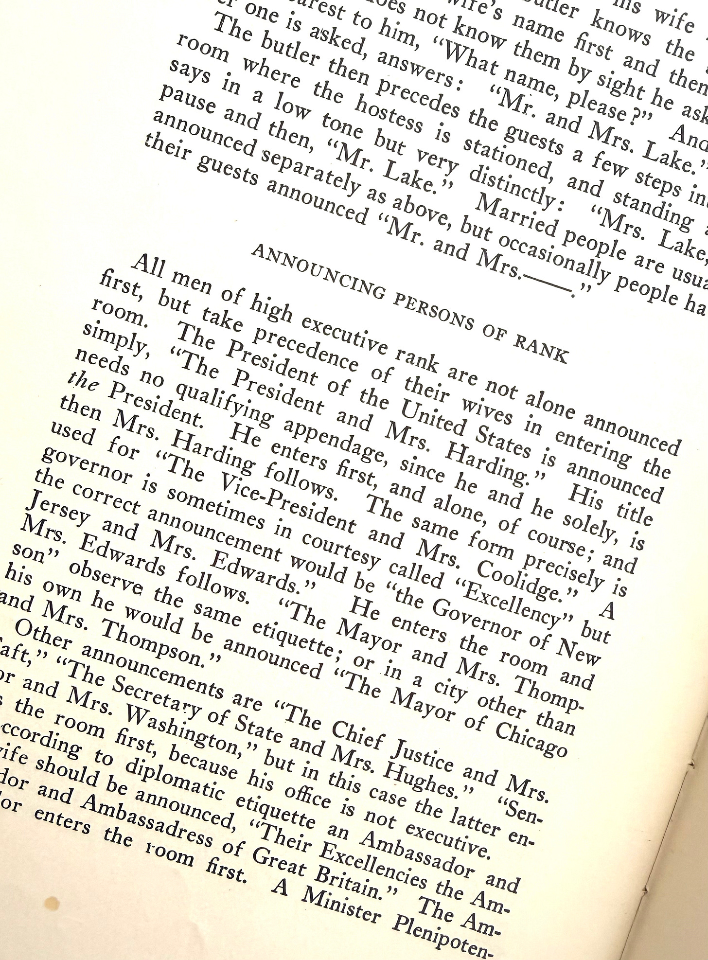 Etiquette, 1922, Announcing Guests & Announcing Persons of Rank